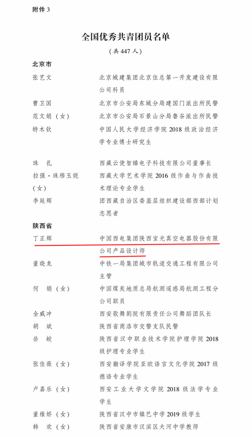 寶光股份技術(shù)中心丁正輝 榮獲“全國(guó)優(yōu)秀共青團(tuán)員”榮譽(yù)稱號(hào)