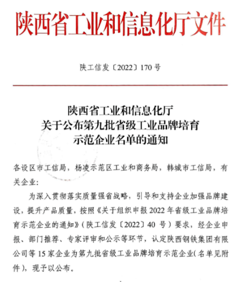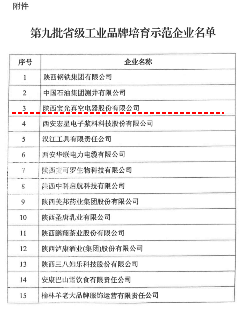 近日,陜西省工業和信息化廳公布了第九批省級工業品牌培育示范企業名單,寶光股份成功入選并榮獲“省級工業品牌培育示范企業”稱號。