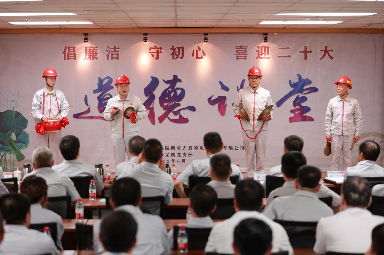 為將黨史學習教育不斷引向深入,全面提升廣大職工道德素養,進一步促進企業精神文明建設,切實激發廣大干部職工砥礪奮進、爭開新局的信心和決心,以更加飽滿的工作熱情迎接建黨101周年和黨的二十大的勝利召開,6月28日下午,由寶光股份黨委主辦,生產采購黨支部承辦的“倡廉潔、守初心、喜迎二十大”主題道德講堂如期舉行。