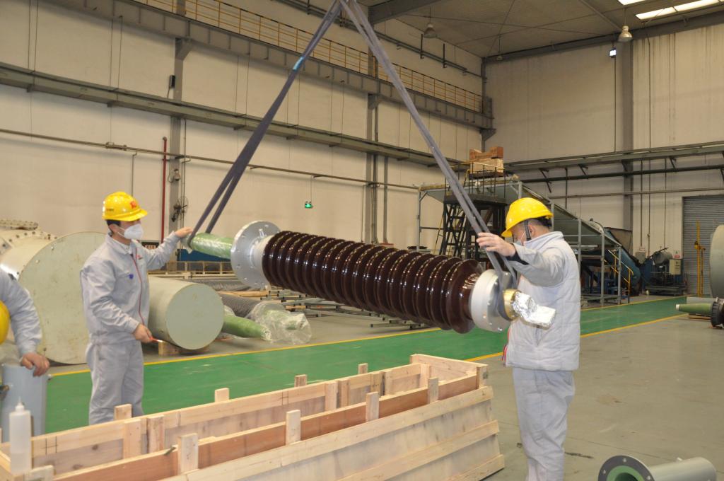要保證項(xiàng)目順利實(shí)施,生產(chǎn)全過(guò)程技術(shù)支持團(tuán)隊(duì)鉚足干勁、全力以赴。在這個(gè)年輕的團(tuán)隊(duì)里,許多人或新婚燕爾、或家有幼子,他們的職責(zé)是全程跟蹤生產(chǎn)和試驗(yàn),支援監(jiān)造隊(duì)伍,做好現(xiàn)場(chǎng)技術(shù)支持,加班加點(diǎn)、不分晝夜、長(zhǎng)期出差已是家常便飯,但他們無(wú)怨無(wú)悔。董春雷就是這個(gè)團(tuán)隊(duì)的一員。出線裝置是±800kV套管試驗(yàn)用關(guān)鍵設(shè)備,直接影響產(chǎn)品試驗(yàn)的順利進(jìn)行,為此,董春蕾與同事們一起到零部件廠家監(jiān)造40余天。由于水土不服,董春蕾出現(xiàn)了過(guò)敏反應(yīng),全身奇癢難耐,他強(qiáng)忍著身體不適堅(jiān)持完成了任務(wù)?!爱?dāng)時(shí)是挺難受的,但想到時(shí)間緊、任務(wù)重,一旦延誤,就會(huì)影響套管產(chǎn)品如期交付,影響國(guó)家重點(diǎn)項(xiàng)目建設(shè)進(jìn)度,我必須咬緊牙關(guān),不能拖后腿,更不能掉隊(duì)?!鄙a(chǎn)中心主任劉宜斌幾乎每天都堅(jiān)守在車間或生產(chǎn)現(xiàn)場(chǎng),了解員工狀態(tài)、關(guān)心員工需求;副主任金濤隨時(shí)關(guān)注生產(chǎn)進(jìn)度是否與計(jì)劃有出入,隨時(shí)協(xié)調(diào)解決各類問(wèn)題……