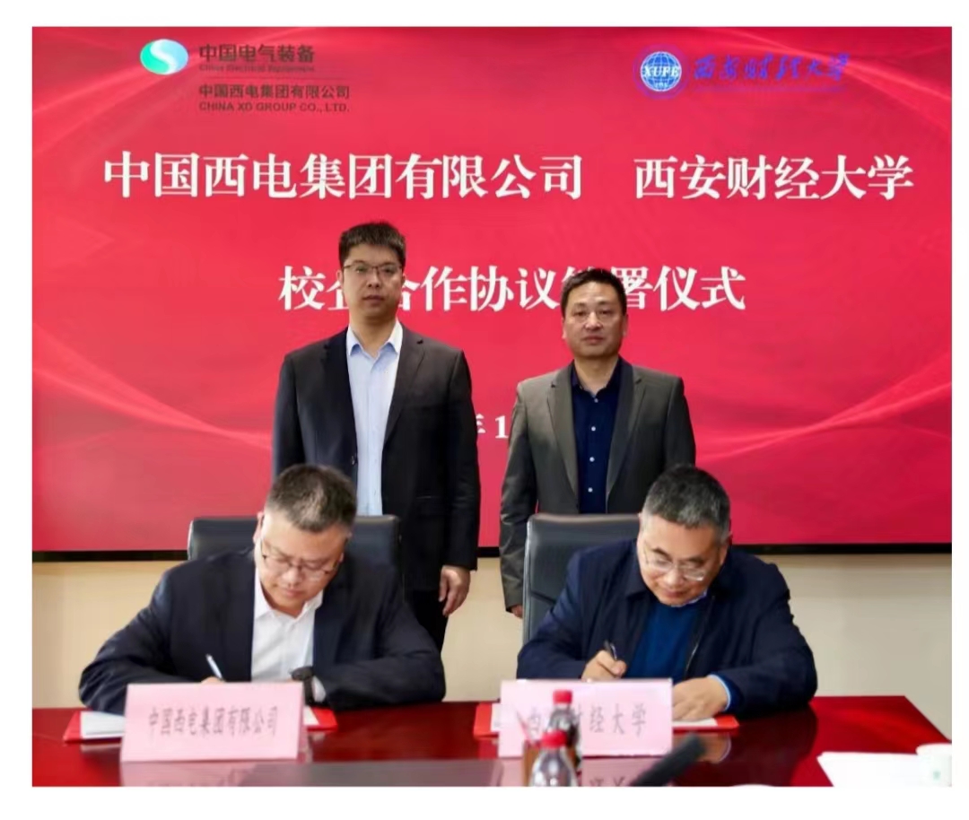 11月22日,中國西電集團與西安財經大學在西安簽訂戰略合作框架協議。中國西電黨委副書記、總經理趙啟,西安財經大學黨委書記楊濤見證簽約儀式。中國西電集團黨委常委、副總經理李紅軍,西安財經大學黨委委員、副校長吳旺延代表雙方簽署戰略合作框架協議。
