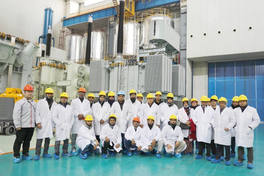 培訓期間,西電常變組織科研設計處、制造技術處、用戶服務處相關技術人員圍繞變壓器的原理、設計、工藝、安裝、運維等方面進行了系統、全面的講解。在國際業務處有關人員的陪同下,孟加拉國家電力發展局工程師一行參觀了公司超(特)高壓車間、電抗器車間,實地了解了變壓器線圈繞制、鐵芯疊裝、內裝、外裝等工序。通過培訓,不僅進一步提升了工程師們的技術水平,更好地服務于孟加拉當地電網建設,也使公司積累了國際培訓經驗,提升了相關人員的國際交流與合作能力,更好地服務、推動國家“一帶一路”倡議。
