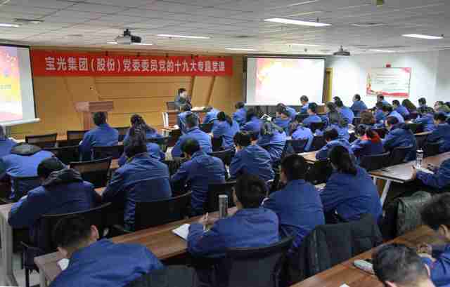 12月13日晚18:30時,寶光集團(股份)黨委委員黨的十九大精神專題黨課,在公司科技大樓2樓大會議室進行,李軍望同志以《統一思想抓落實——深入學習貫徹習近平新時代中國特色社會主義思想》為主題,為來自進出口公司、C產品制造部、固封極柱產品制造部等3個黨支部的100余名基層黨員做了專題黨課。
